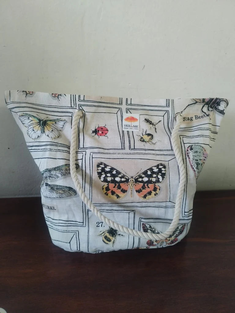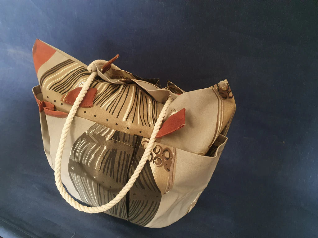 This bag is just the thing for a zero-waste lifestyle. A shopping bag with generously sized pockets on the inside or outside so that you can keep your fresh fruit and veg safe from bruising, your glass items protected and the bigger items in a spot of their own. These bags are also excellent for the beach, and picnics at the park. To have the pockets on the outside you simply turn the bag inside out. Brought to you by Skil-Me, a Triple Orange initiative that seeks to engage with women who have been victims of abuse by offering support while they learn new skills.