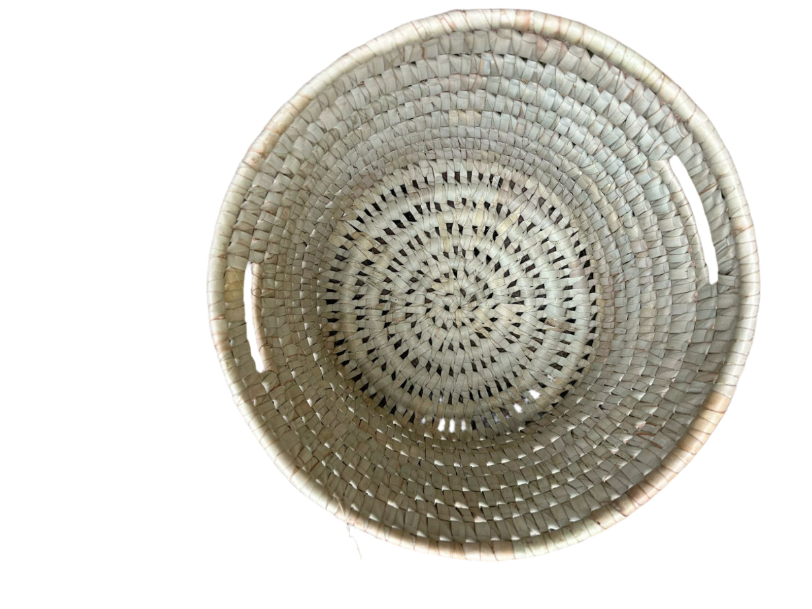 This beautiful basket is a gorgeous addition to any interior. It can be used for a multitude of purposes. Hand weaved in small batches from palm leaves. Variations in size, texture and colour can occur. We try to keep them as uniform and neat as possible, but small imperfections can occur.