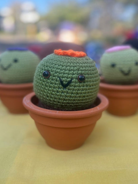These gorgeous cacti are an aesthetic must for adults and kids alike. There are three sizes, large, medium and small for R490, R380 and R200 respectively. The large is about 40-50cm tall, the medium about 25-30cm and the small is a cute little roundish one with a smiley face and a flower hat, about 15cm tall.
