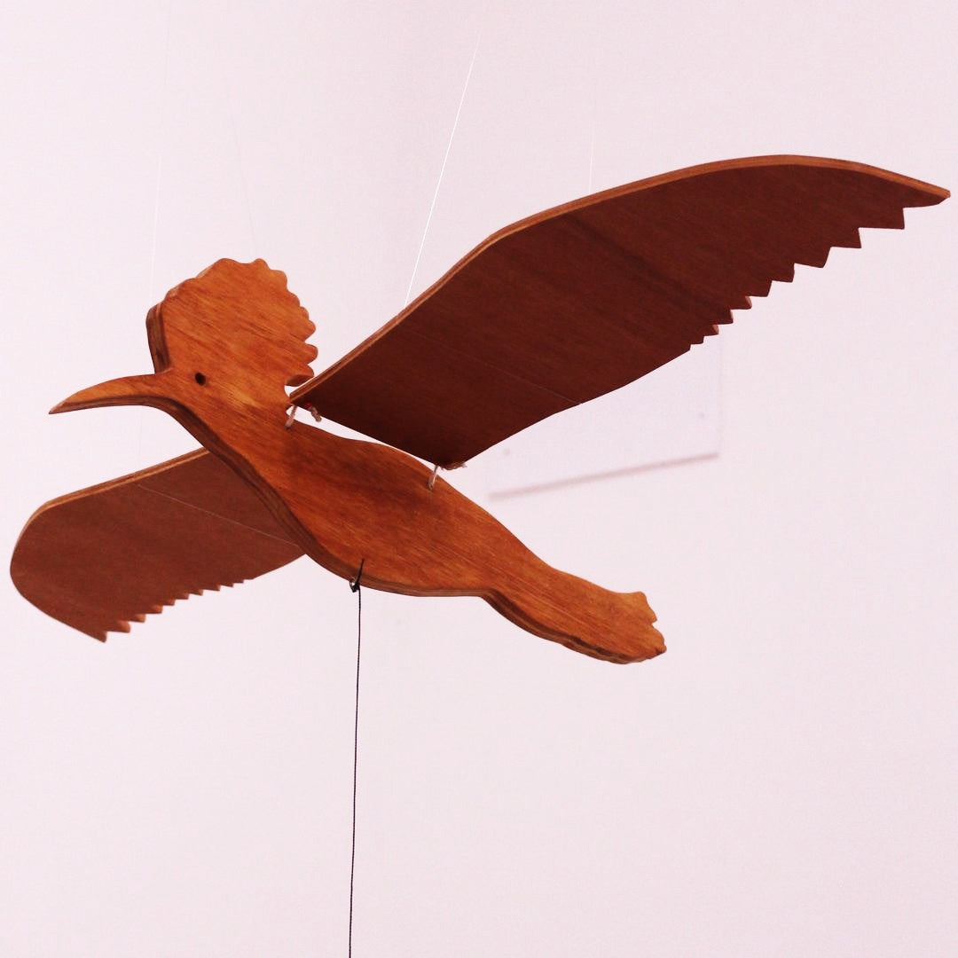 Buy a beautiful Hoopoe mobile for R325. Hang it on a covered verandah or anywhere in the house. Painted with Totim Golden Brown wood sealer. Made from pine plywood.