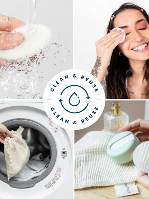 The rounds are stiff in the case but become wonderfully soft and smooth when wet. Add water, squeeze out the excess, and add your favorite toner or makeup remover. Wash with soap and water and let it dry before you pop it back into the container. You can also toss it into a Laundry Bag and wash it with your laundry. Each round can be reused 250 times, so you'll eliminate 1750 single-use cotton rounds with the seven rounds in the case!