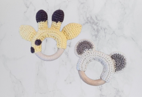 These teething rings feature smooth, sanded-down and polished beechwood rings. These beechwood teethers are naturally safe for your baby to put in their mouth. In fact, scientists have found beechwood to be one of the top three kinds of wood suitable for your baby. Not only is a wood teether antibacterial, it's also 100% natural. These teethers make a lovely baby shower gift. Available in various crocheted or fabric designs. They provide a safe, soothing option for babies to chew on during teething. Handmade with love by Irene of JD & Jaz. Should you require a more specific colour, kindly speak to us to make a custom order for you.